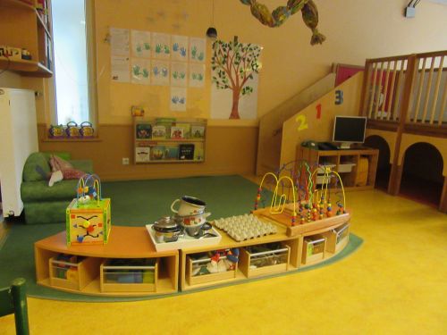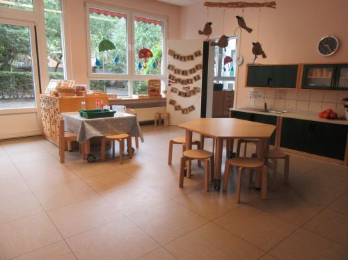 In diesem Gruppenraum gibt es viele kleine Bereiche, wo Kinder ihren Interessen nach gehen können.