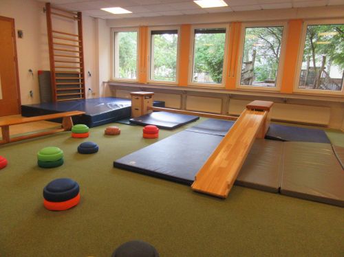 Ein großer lichtdurchfluteter Raum mit vielen verschiedenen Bewegungsangeboten.
