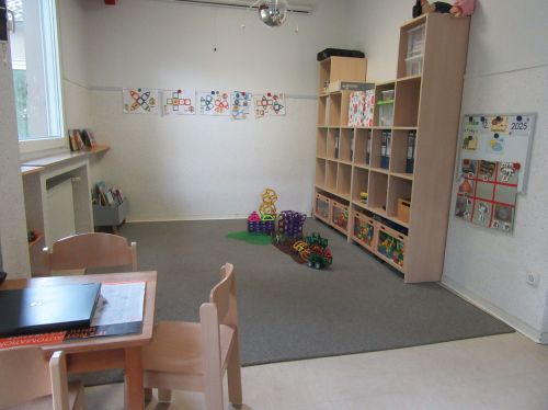 Dies ist ein Ausschnitt vom Nebenraum der Igelgruppe. Dieser Nebenraum wird in der Mittagszeit zum Schlafraum umfunktioniert.