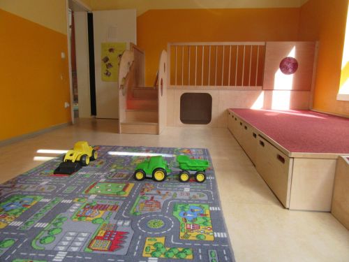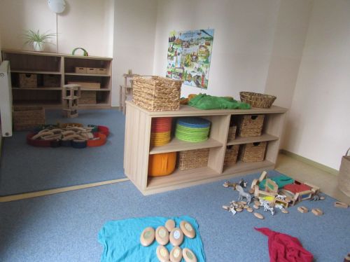 Dies ist ein Ausschnitt vom Nebenraum der Igelgruppe. Dieser Nebenraum wird in der Mittagszeit zum Schlafraum umfunktioniert.