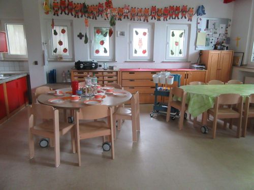 Zu sehen ist hier der Gruppenraum dieser Gruppe. Der runde Teppich lädt jeden Morgen zum Morgenkreis ein.